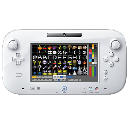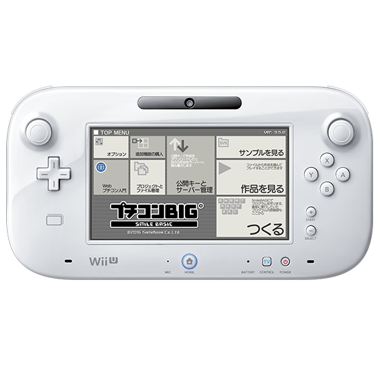 『プチコンBIG』専用の画面モードと命令が追加されているほか、最大854×480ドットの高解像度表示に対応し、セーブデータ領域は512MBまで使用可能。素材画像エリアも1024×1024に拡張され、WiiリモコンやGamePadを使ったWii U用の本格的な作品を開発することが可能です。