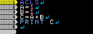 │これは第1回目に登場した「1+1」を計算する命令です。PRINT命令をダイレクトモードで実行していました。