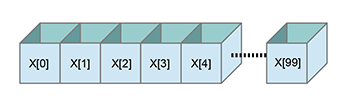 たとえば、「DIM X[100]」と実行すると、要素が100個あるXという配列が作られます。DIMを使って配列を作成することを「配列を宣言する」といいます。