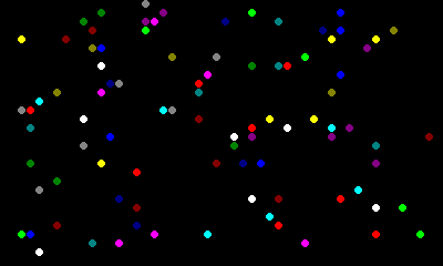 プログラムを実行すると、このとおりです。100個のボールが表示されます。