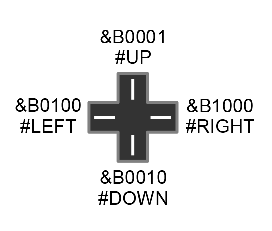 この中の「#」というのは「定数」といい、SmileBASICが事前に登録している数値に置き換える機能です。これによって、「#LEFT」は「&B100」に置き換わります。式は次のように考えることができます。