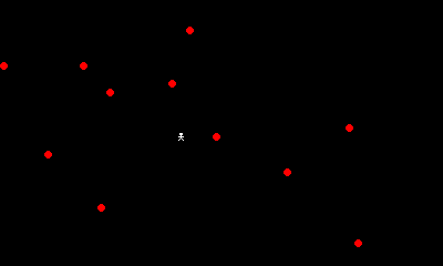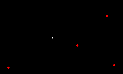画面中央にある人型のキャラがプレイヤーです。プレイヤーをうまく操って、ボールをよけるというゲームです。プレイヤーは十字ボタンを使って、左右に動かすことができます。上下には動かすことができません。