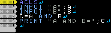 たとえば、こちらはAND処理を行うプログラムです。4行目の「C=A AND B」がその数式です。