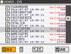 ファイルの中にはプログラムやデーターが入っています。ちなみに「GAME~」というファイルがゲームのプログラムです。「EX~」というファイルがゲーム以外のプログラムです。