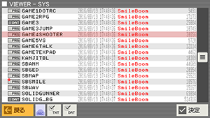 ファイルの中にはプログラムやデーターが入っています。ちなみに「GAME~」というファイルがゲームのプログラムです。「EX~」というファイルがゲーム以外のプログラムです。