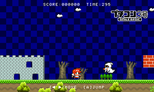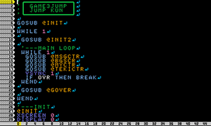 「GAME3JUMP」というファイルを実行した様子です。「JUMP KUN」というゲームを遊ぶことができます。横スクロールのジャンプアクションゲームです。