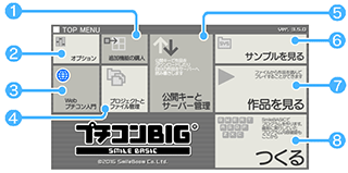 TOP MENUは、プチコンBIGを起動すると最初に表示される画面です。