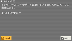 プチコンやBASICを初めて触る人のために初心者用の説明が用意された「プチコン入門」の公式ページをブラウザで表示します。(インターネットに接続できる環境が必要です)
