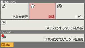 プログラムやデータなどのファイルは、標準状態では DEFAULT という名前のプロジェクトフォルダに保存されます。作品が増えた場合には、新しいプロジェクトフォルダを追加して管理することができます。詳しくは「プロジェクトとファイルの管理」のページを参照してください。