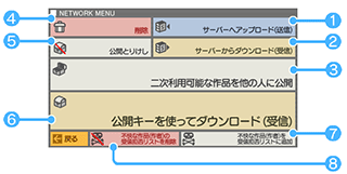ネットワークに接続してファイルをプチコンサーバーに保管したり完成した作品を公開する場合に利用するメニューです。このメニューを実行するためにはインターネットに接続できる環境が必要です。