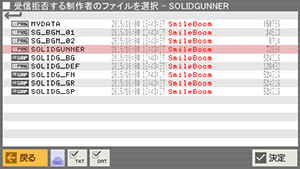 ファイルの一覧が表示されるので、受信拒否したい人が作成したファイルを選択し、決定してください。
