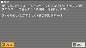 プチコンサーバーにアップロードされた作品を公開する機能です。公開することで「公開キー」が生成されて他の人に作品を渡すことができます。