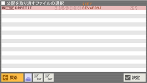 十字ボタンで公開を取り消すスロットを選択し、Aボタンで決定します。確認メッセージが表示されます。