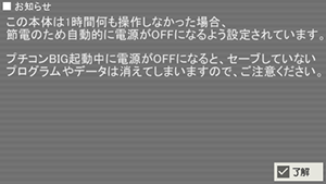 プチコンBIGを実行中に何も入力が無い状態で放置すると本体の電源が切れます。この際、SAVEしていないプログラムやデータがあると消えてしまいます。小まめに保存するようにするか、本体の設定を変更して自動電源OFF機能を無効にしてください。