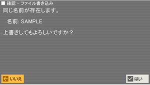 同じ名前のファイルがすでに存在するときは、確認メッセージが表示されます。