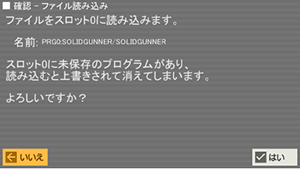 SLOT上のプログラムを無視して読み込むか確認するダイアログが表示されます。消えても問題が無い場合は「はい」を押して下さい。