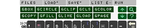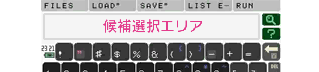 キーボードが表示されているときにLボタンを押すと、ファンクションキー部分にプログラムファイルの読み書き支援用ボタンが表示されます。LOADボタンを押すとファイル一覧ダイアログが開き、選択したファイルをLOADします。SAVEボタンでは保存用のファイルを選択しSAVEします。現在読み込まれているファイル名の確認も可能です。