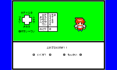 1対1の戦闘と、レベルアップのパラメータ上昇に特化! オープニングと1勝のたびにポイントをうまく「力」や「守り」など振り分けて、武道会を最後まで勝ち抜くのだ。