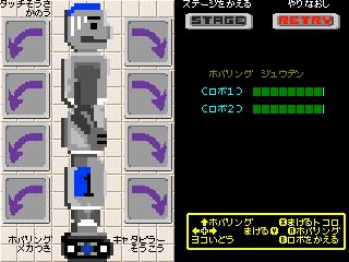 ロボのカクカクした構造がオモシロいのう。パズルとしてもナイスアイディア、1段だけ登れるロボの階段を作るのは手ごたえもあって楽しいぞ。