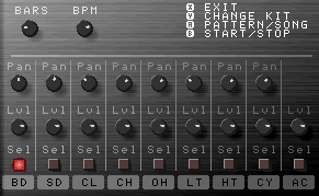 パターンモードでは選択したひとつのパターンを繰り返し演奏することができ、ソングモードではパターンを32小節まで自由に並べ、曲として演奏することができます。