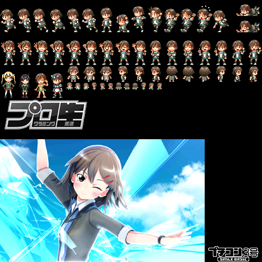 プログラミング生放送様提供による、マスコットキャラクターのプロ生ちゃん(暮井慧さん)ほかの画像、定義データがセットになった公開キーです。ゲームの作成や元素材に、またあらゆる意表をつく使い方に、ご自由にお使いください。