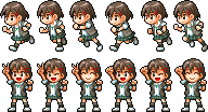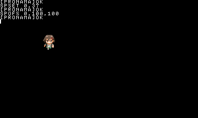 その状態でSPANIM 0,"I",15,37,15,39,0↵すると、歩いているようにアニメーションします。これはSPRITEの定義番号37番と39番を10フレームずつ、切り替えては戻しているからです。