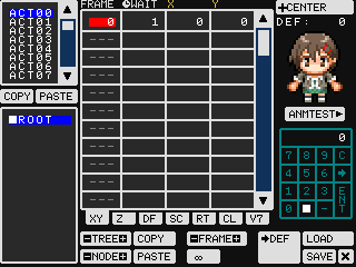 こういったアニメデータをSMILE TOOLの書式でまとめたのがファイル「ANM_PRONAMA」です。このデータを使うには、基本的にSMILE TOOLで開いて、いちどプログラム形式で保存します。