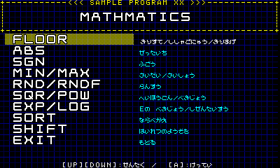 トップメニュー「SmileBASICでプログラムを作る」から、LOAD"SYS/EX8TECDEMO"↵でプログラムが読み込まれます。キーボードの「EDIT」キーを押すと、このプログラムが自由に編集できます。