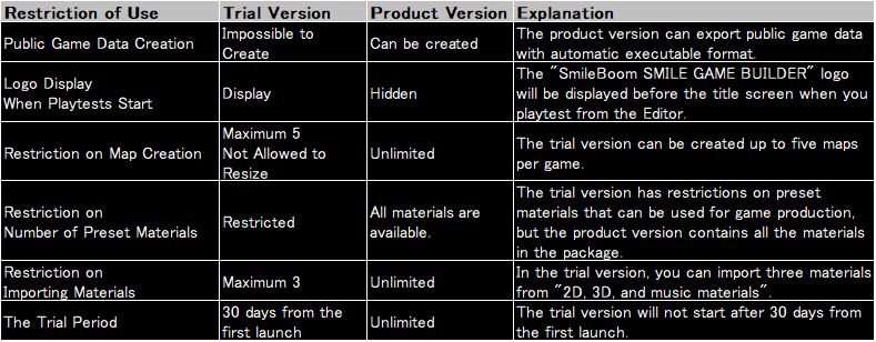 Game data created in the trial version can be loaded into the full version after purchase, so you can continue developing your work.