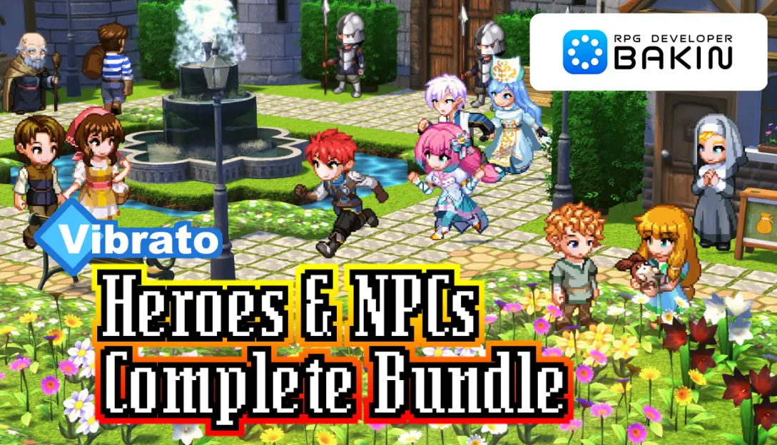 本日、『RPG Developer Bakin』本体と人気DLCをまとめて収録したお得なバンドル版『Vibrato Heroes & NPCs Complete Bundle』の販売を開始しました。また、2026年5月12日(火)午前10時(JST)までは「SmileBoom Golden Week Sale Sale 2026」の割引が適用され、さらにお得になります。