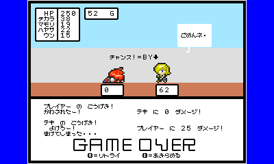 一発ネタを極めたかんじじゃな。それでいてグラフィックやBGMまでオリジナルで作ってあってあなどれんわい。