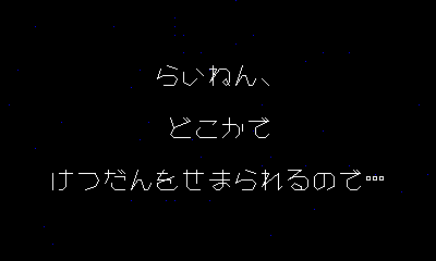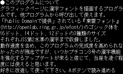 どうせいっちゅうんじゃ。という楽しいジョークソフトじゃな。拡大縮小も自在にできる文字の処理がテクニカルじゃぞ。タイトル画面がちょっと懐ゲー風味で泣かせるわい。