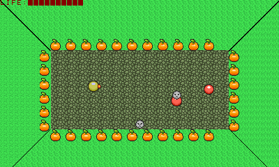 コレ、1画面プログラムなのじゃ。ジャマ物に当たっても体の端なら見逃してもらえるので、気持ちのいいスピード感が出ておるのじゃ。