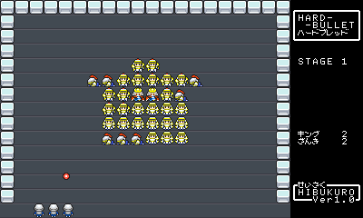 玉が跳ね回るのが楽しいゲームじゃがなかなか高難度じゃぞ。地面やカベだけじゃなく、玉どうしの接触判定もあってナカナカ思い通りにいかんわい。