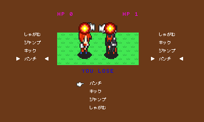最初のままではジャンケンじゃが、体力がなくなるまでループするのでその前にうまく切り替える、スピードと認識力の勝負なのが面白いぞい。
